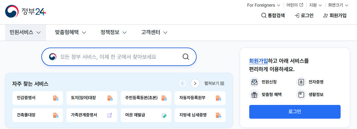- ① 정부24 – 주민등록 기반 공공서비스 통합 조회